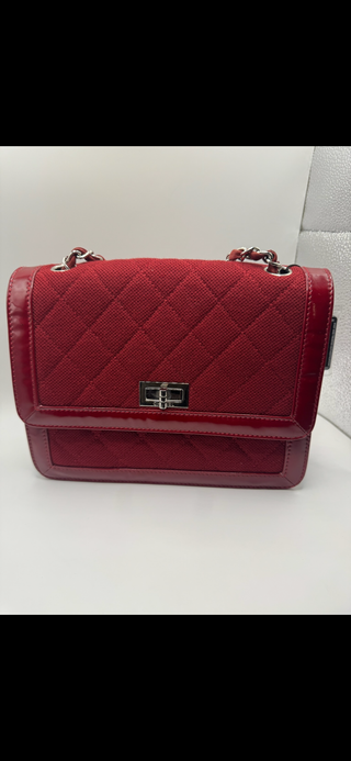 Authentic Chanel Vintage Red Quilted Jersey & Patent Leather Shoulder Bag - REISSUE