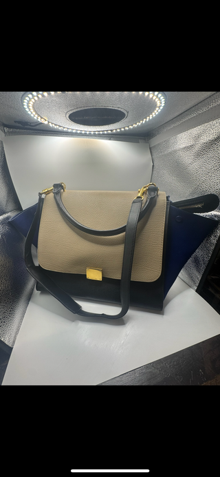Céline Trapeze Tricolor Leather & Suede Shoulder Bag – Beige, Black, Blue