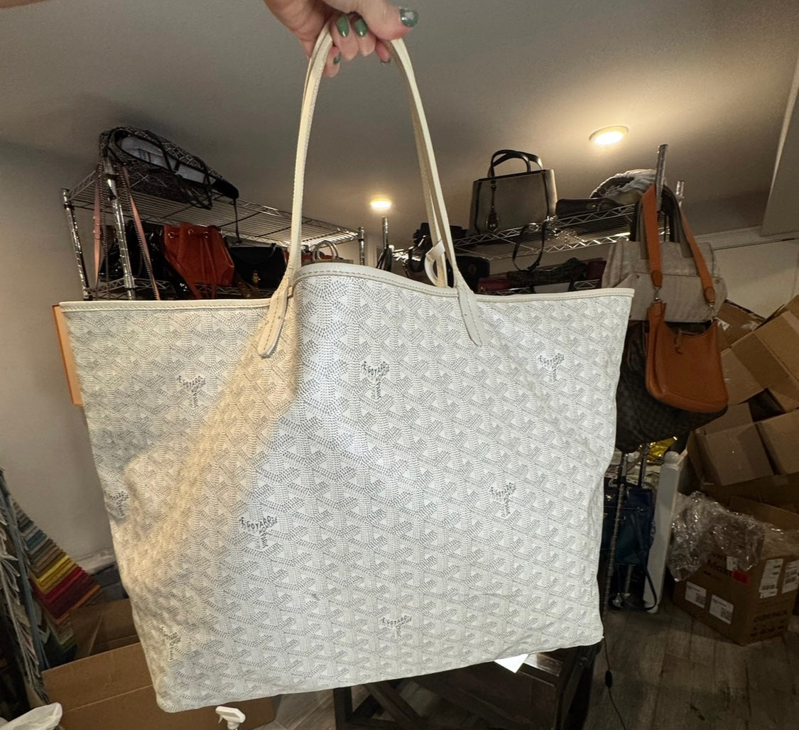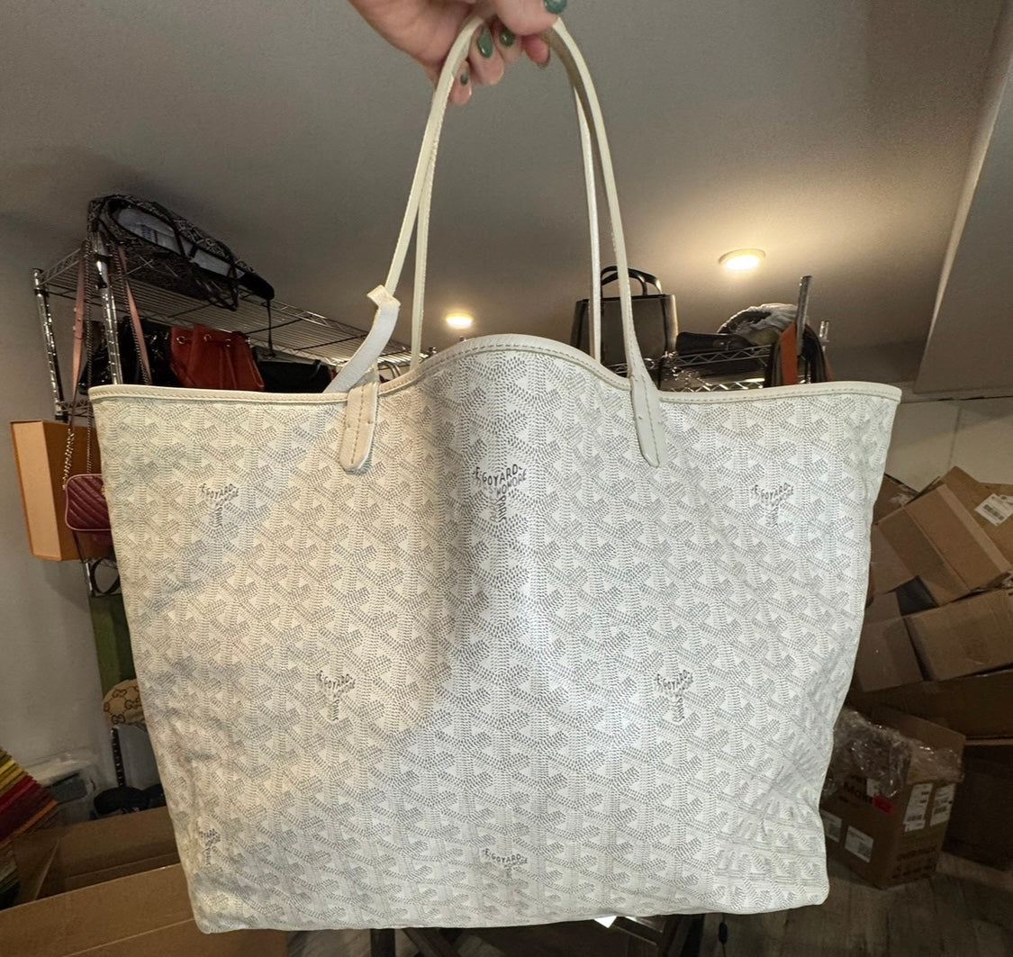Authentic Goyard St. Louis GM Tote White Goyardine Canvas with Pouch