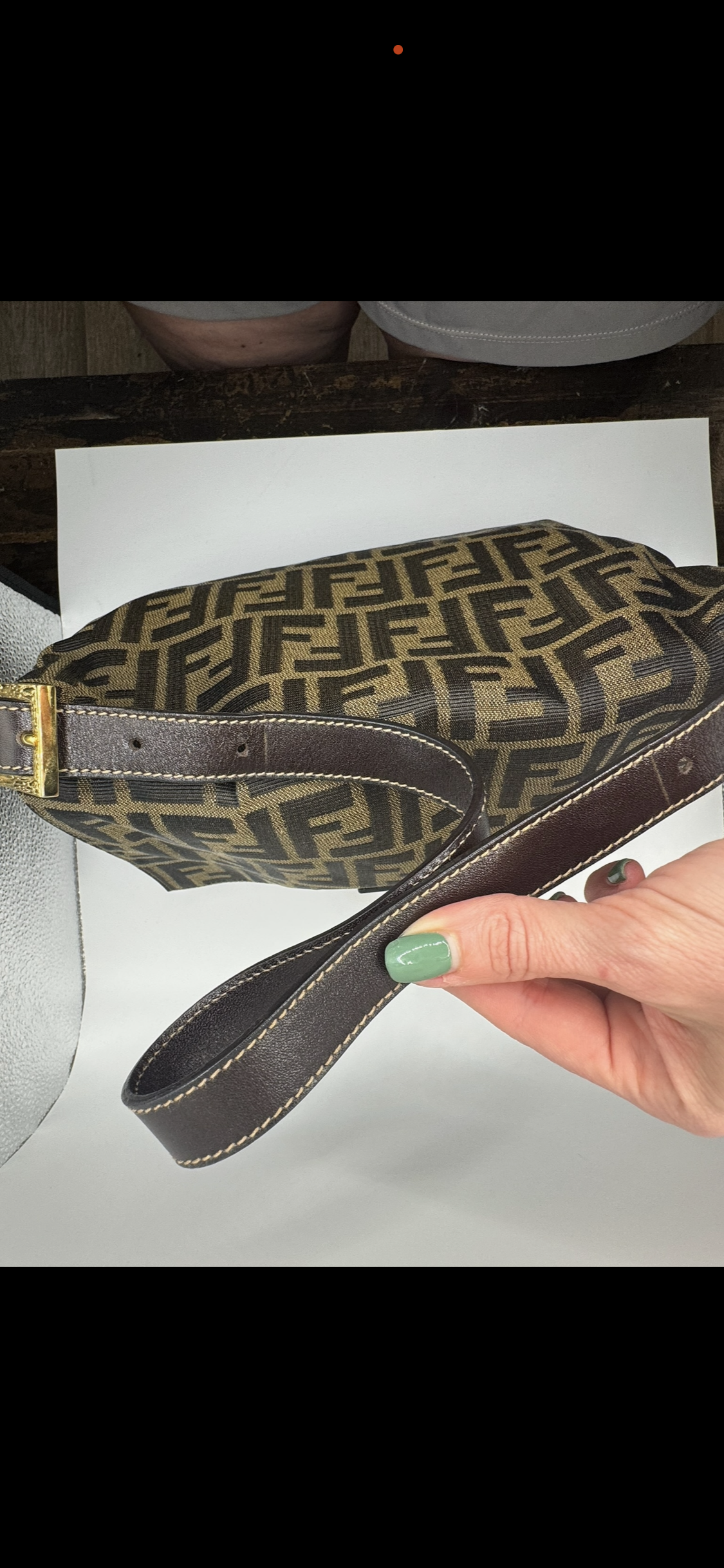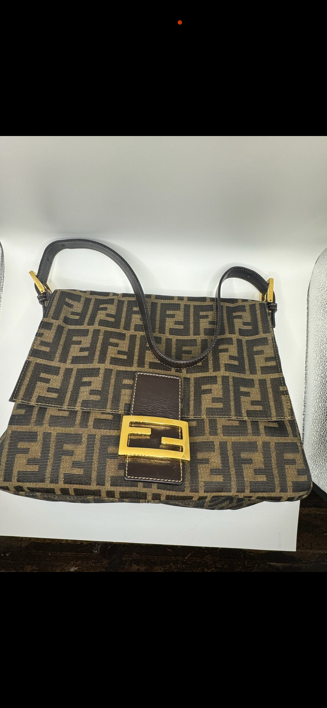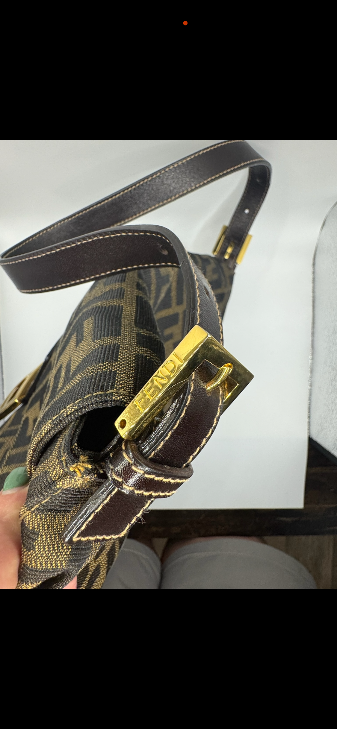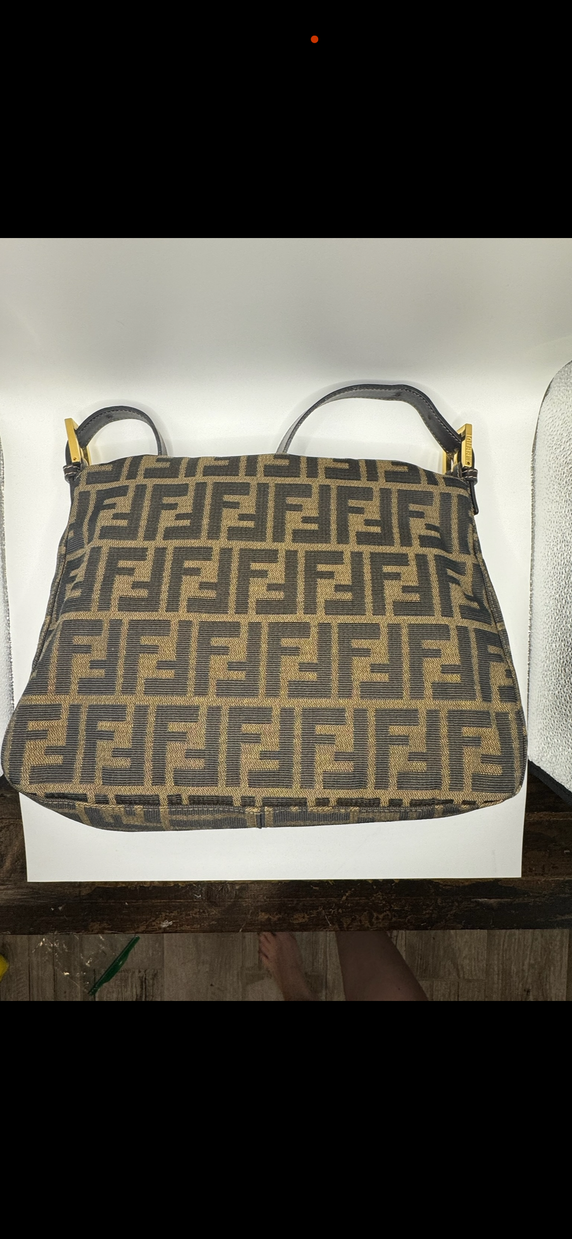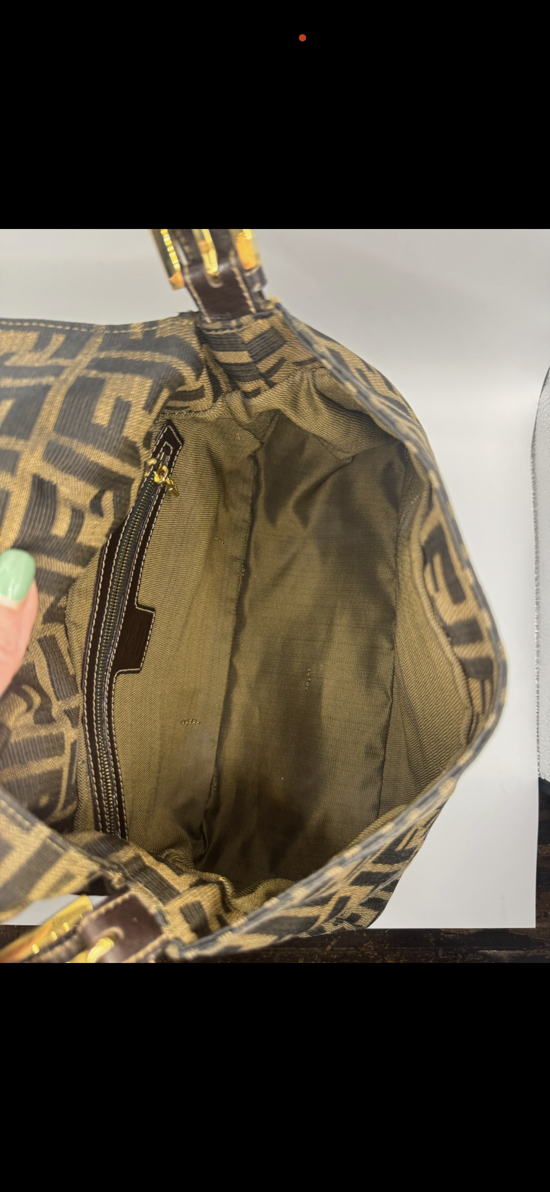 Fendi Zucca Mamma Baguette Shoulder Bag – Brown Canvas with Gold Hardware