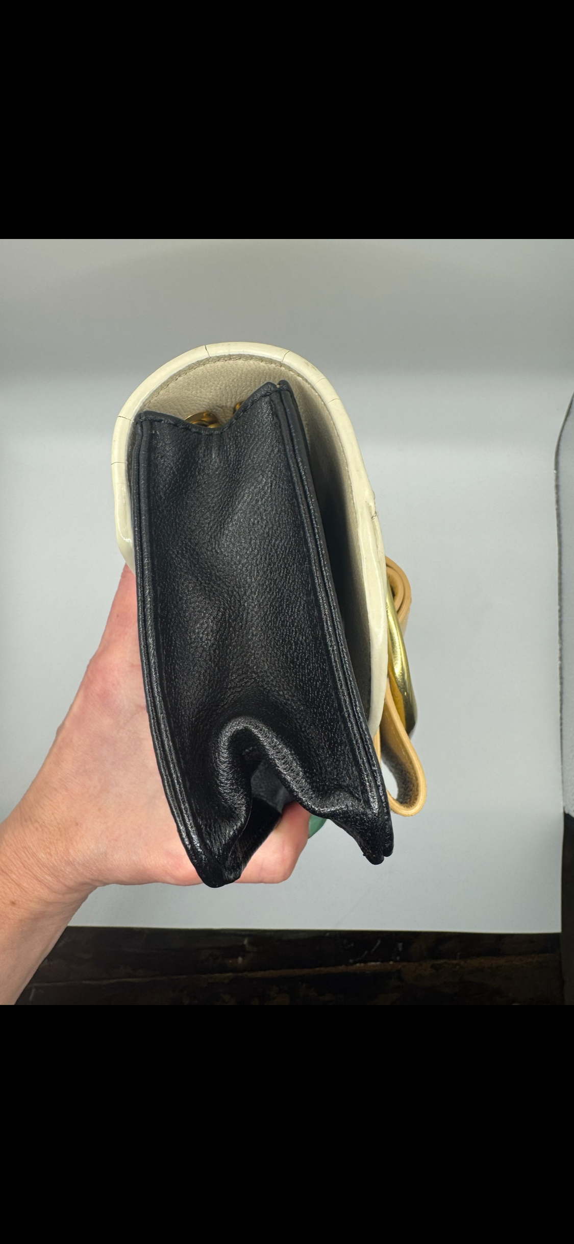 Chic and versatile, this See by Chloé Mini Hopper Crossbody adds effortless elegance to any outfit. The structured silhouette is crafted in a beige and cream colorblock with gold-tone accents, finished with the signature See by Chloé medallion charm. Compact yet functional, it’s perfect for day-to-night wear.