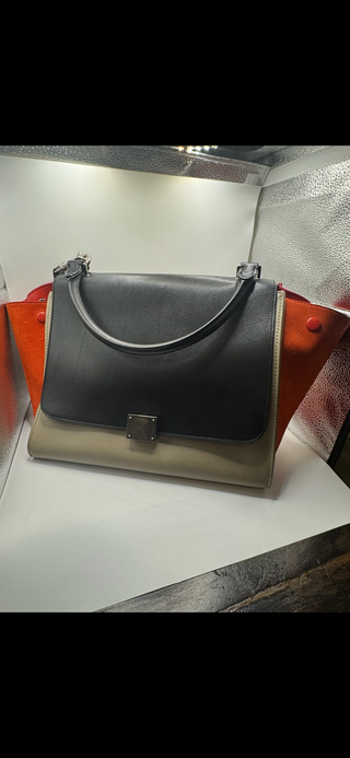 Authentic Celine Trapeze 2-Way Handbag Orange Leather Top Handle Shoulder Bag
