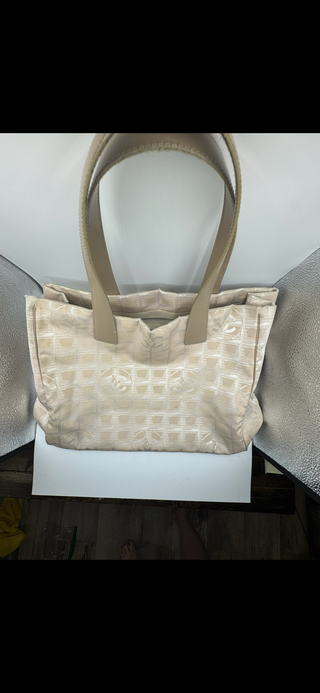 Chanel Travel Line Tote Bag Beige Nylon CC Logo Shopper Handbag