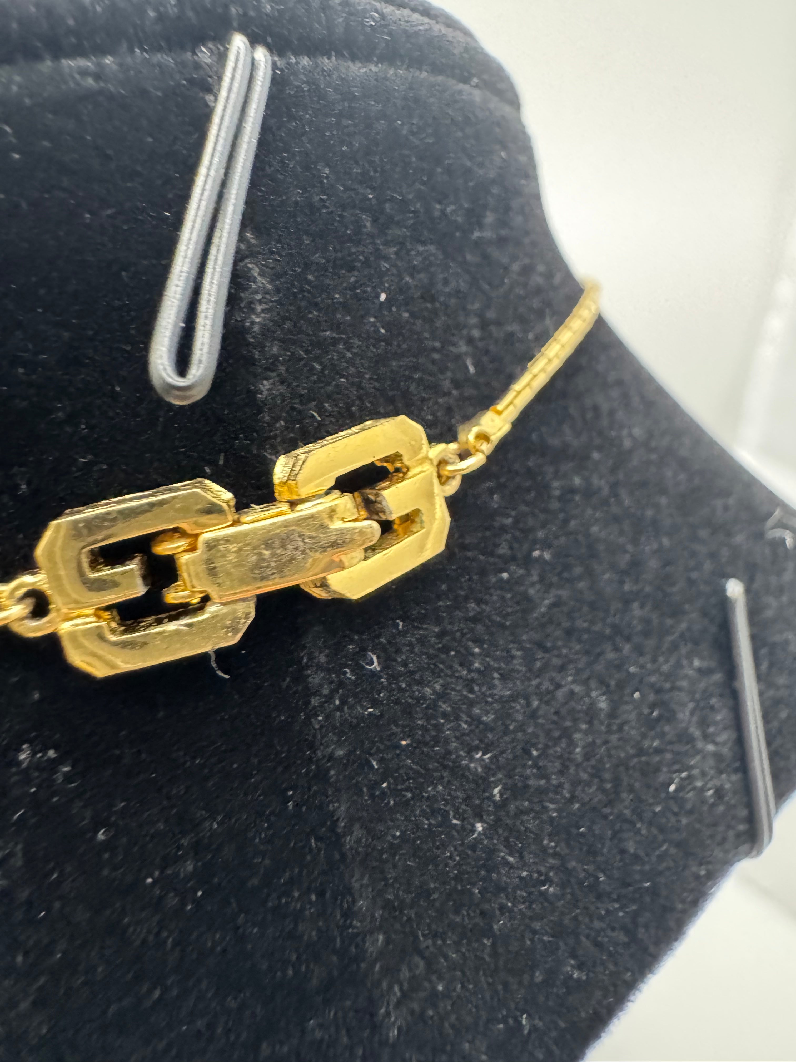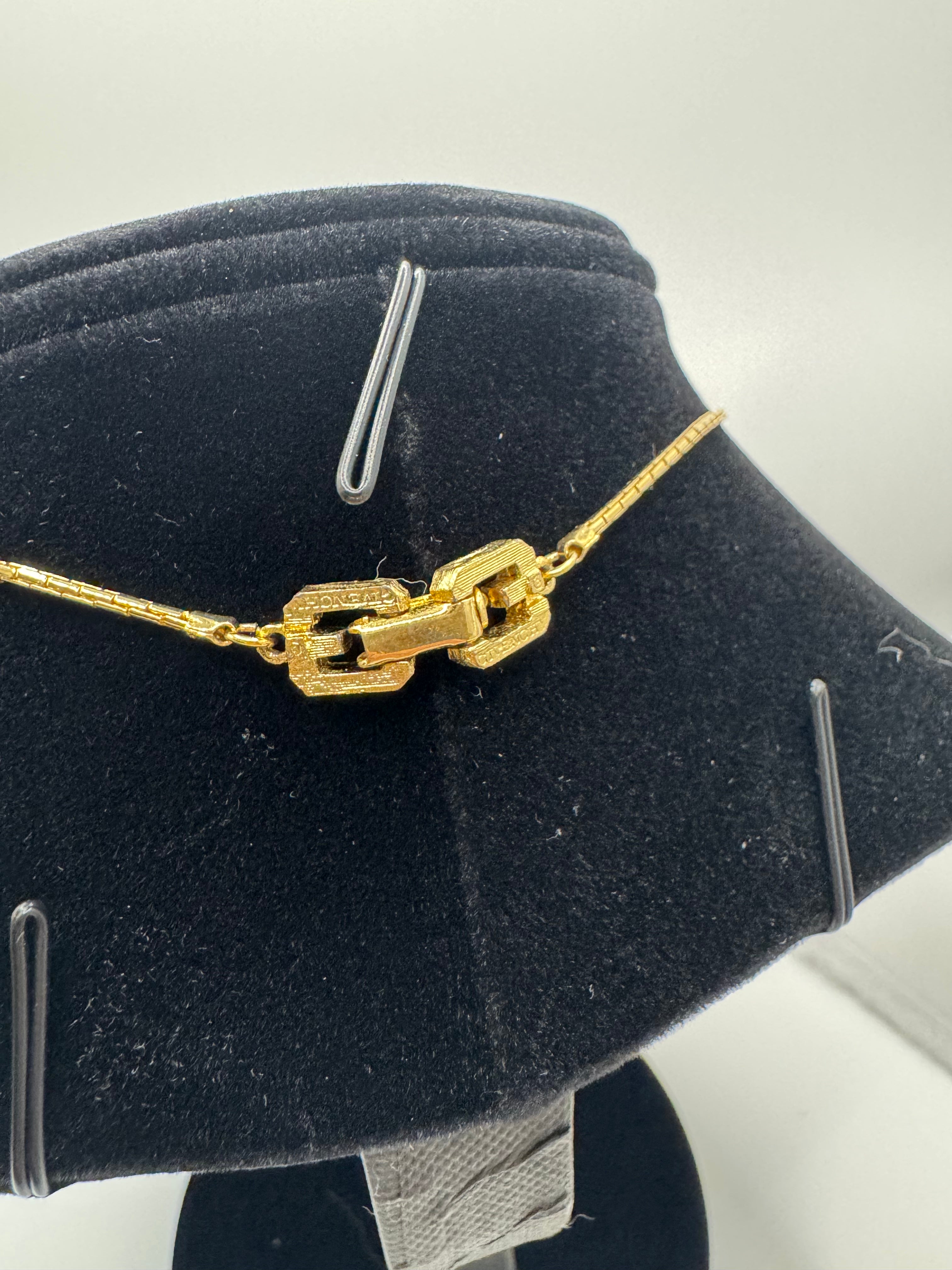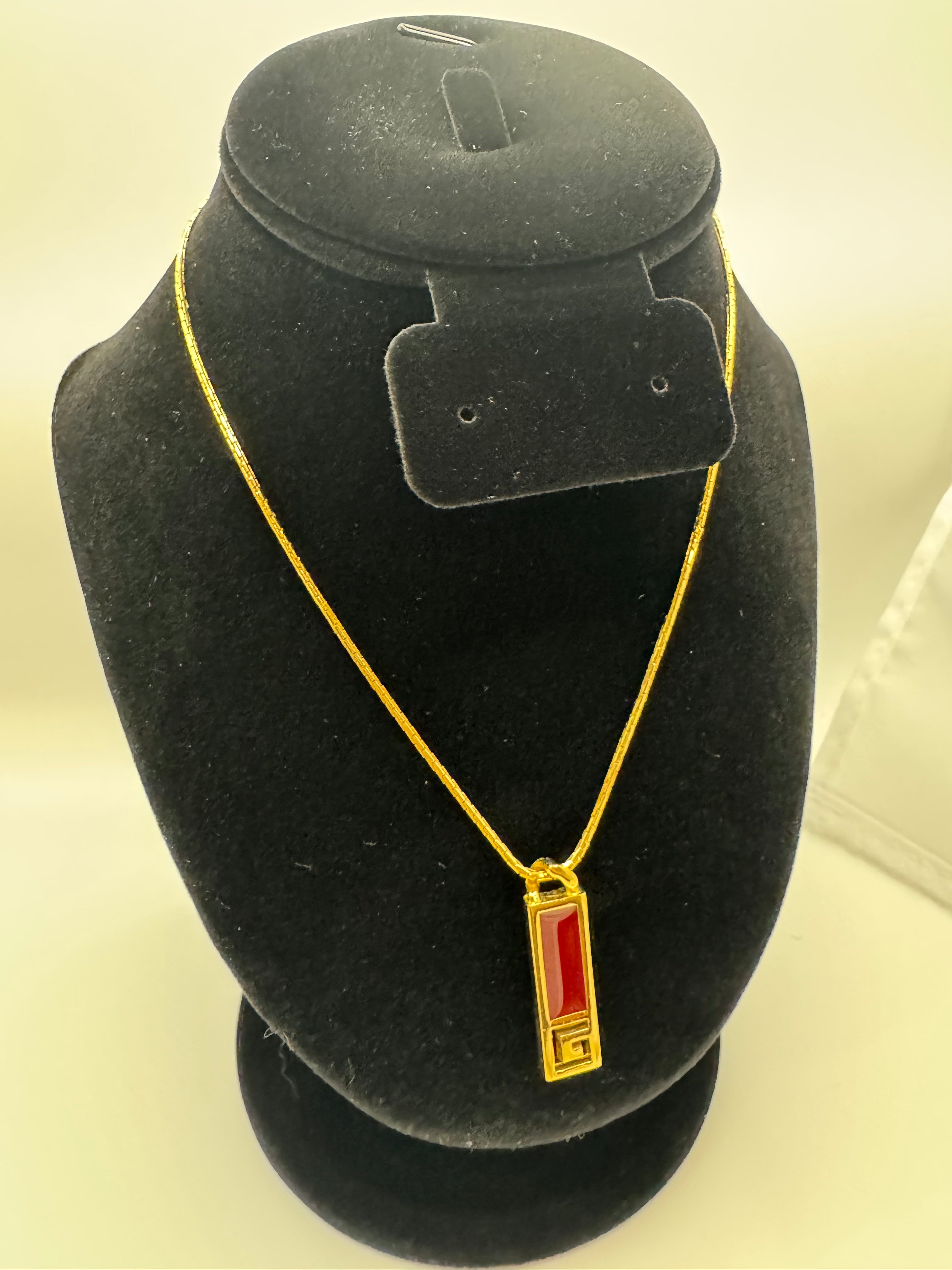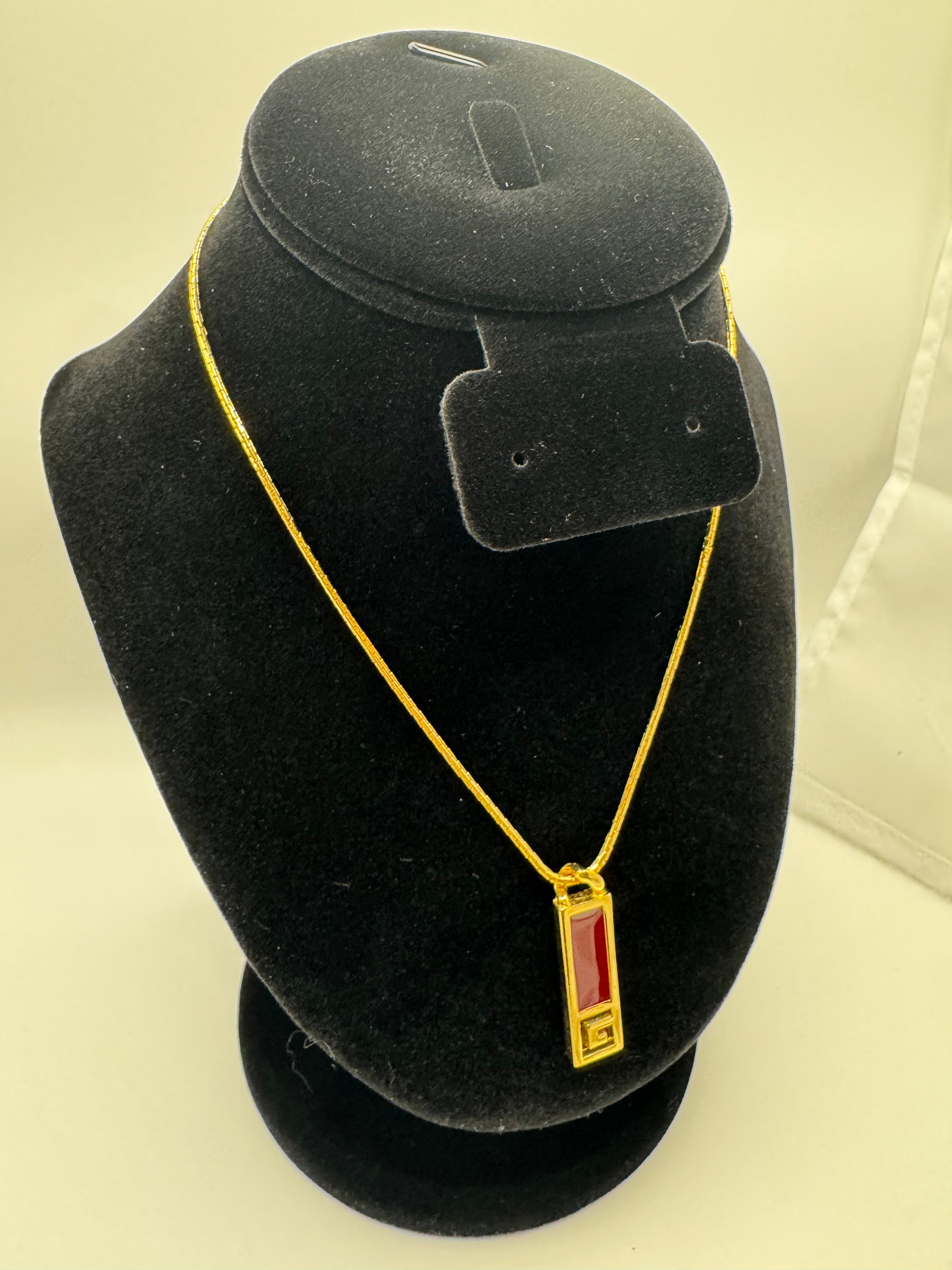 Gold-plated 16" necklace with a 1.5" pendant. In excellent condition.