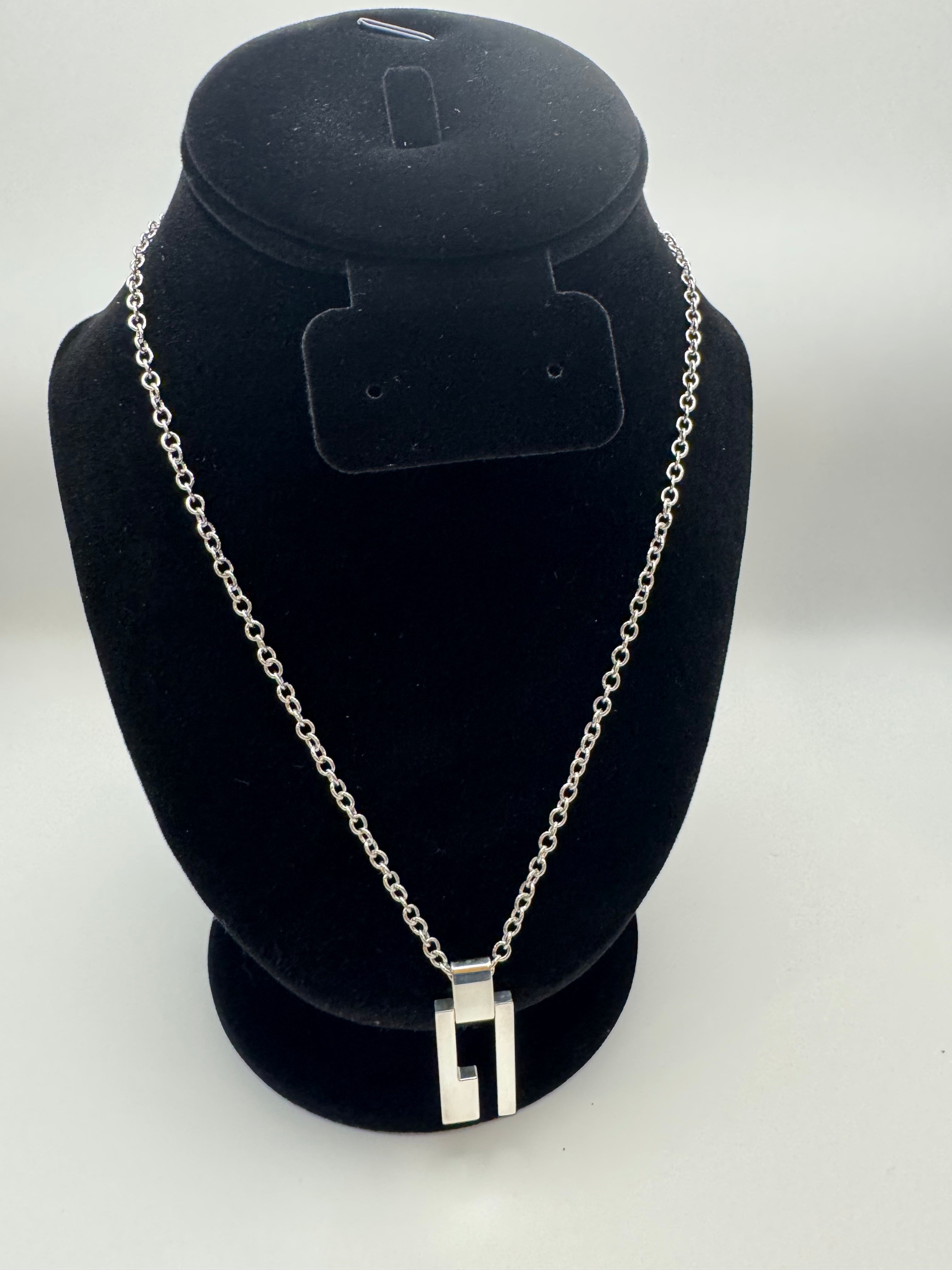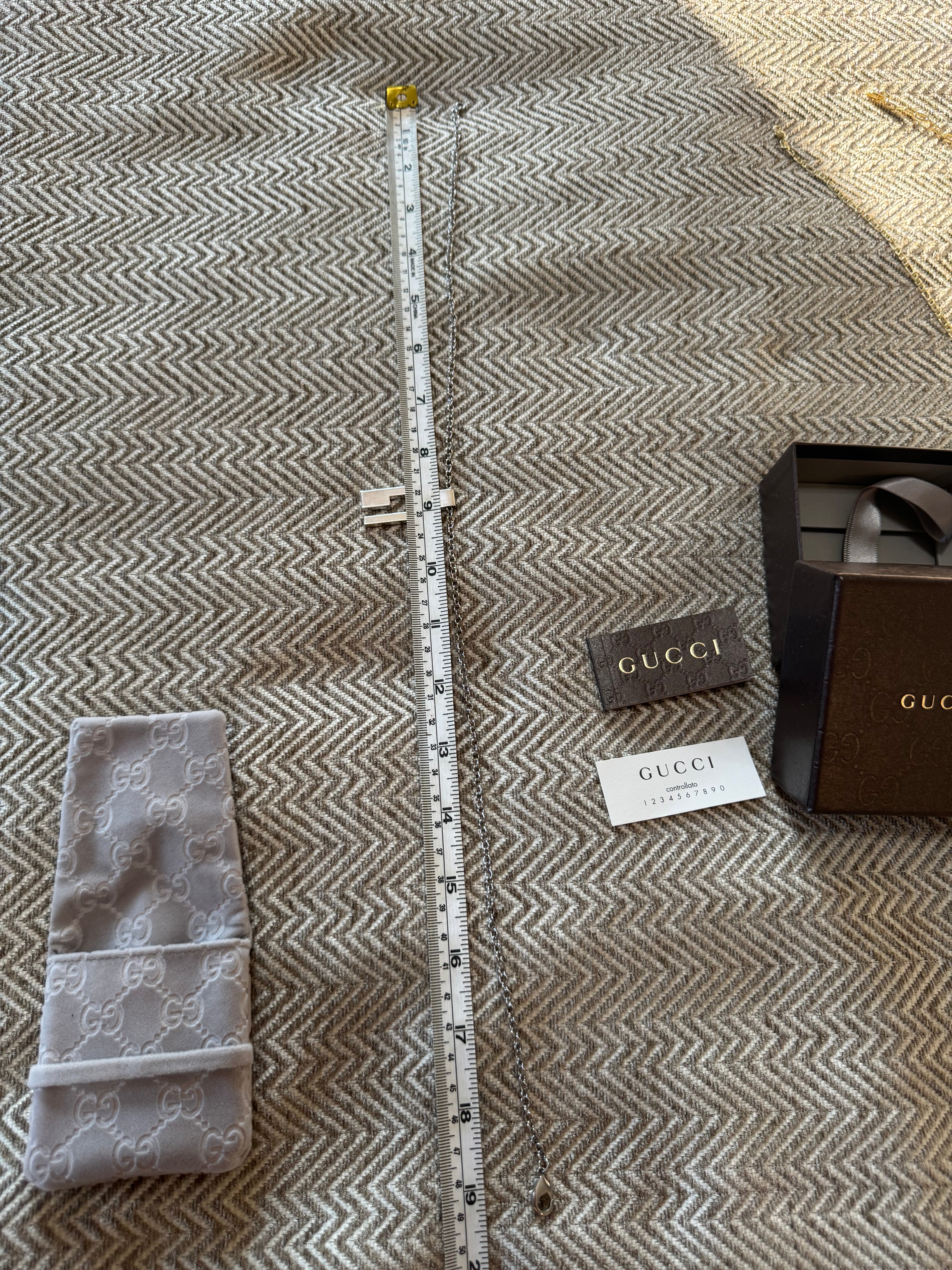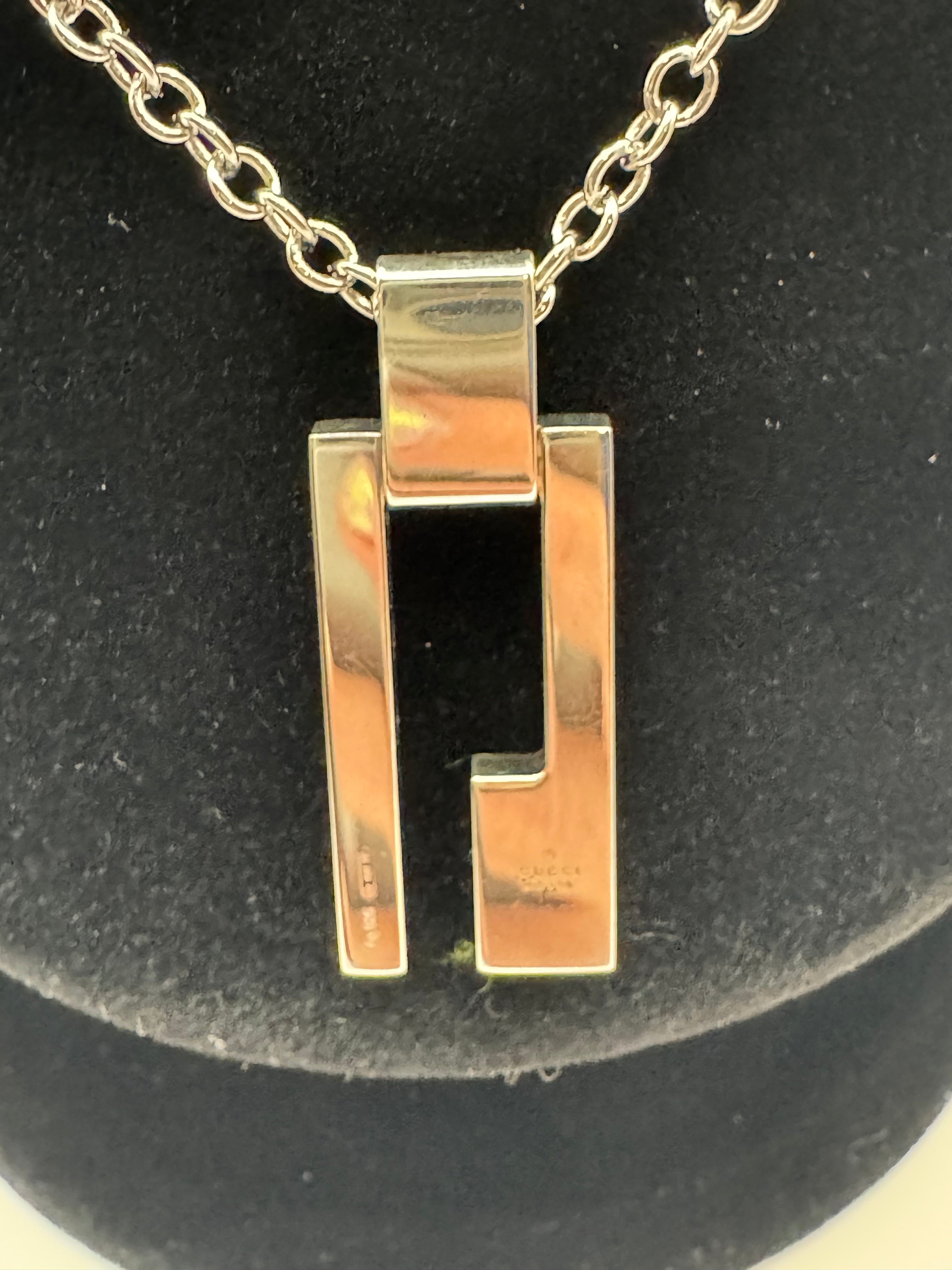 Elegant Vintage Gucci pendant necklace. Sleek silver design. Perfect for any occasion.