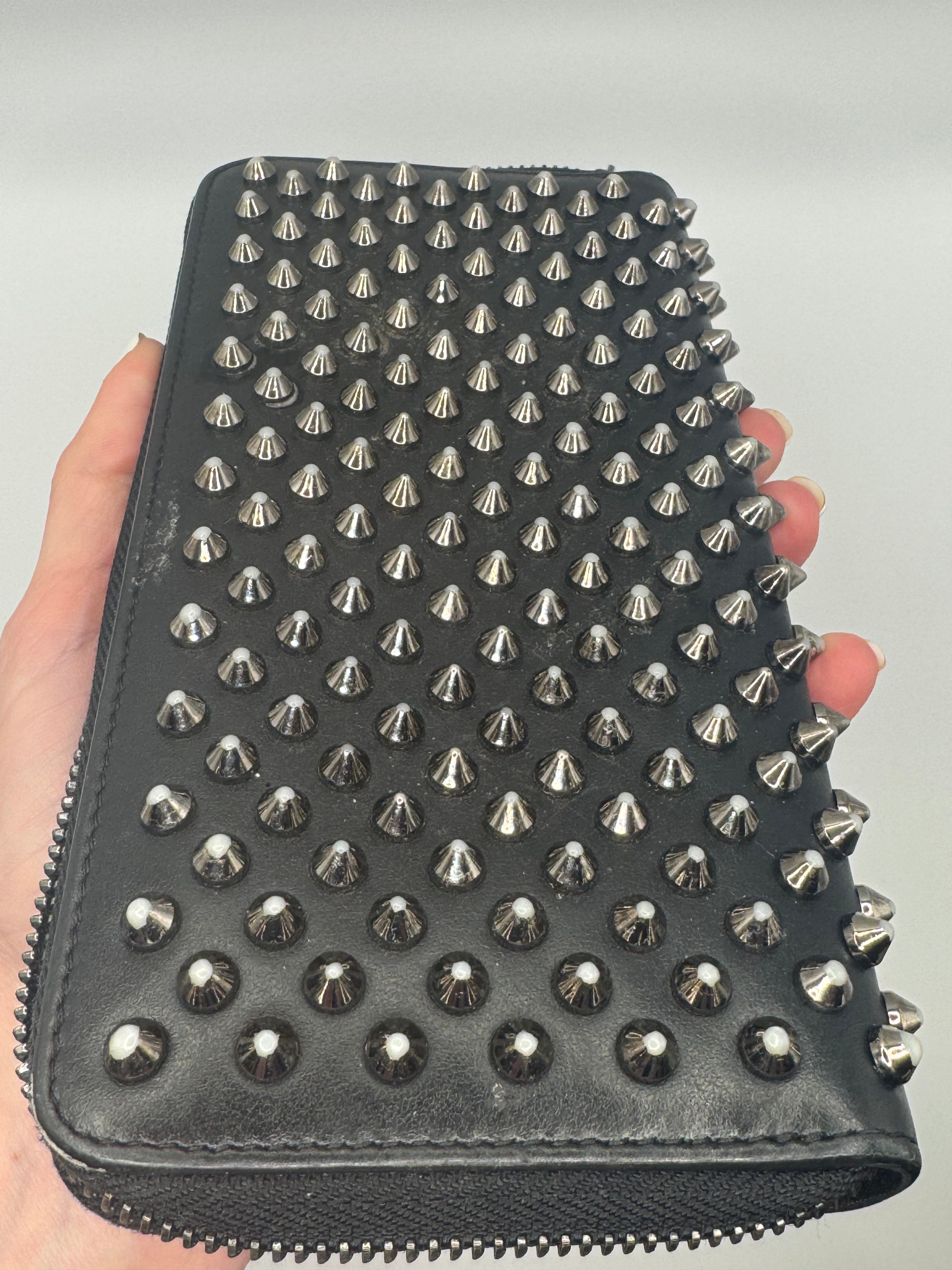 Christian Louboutin Panettone Long Zippy Wallet in Black Spiked Leather