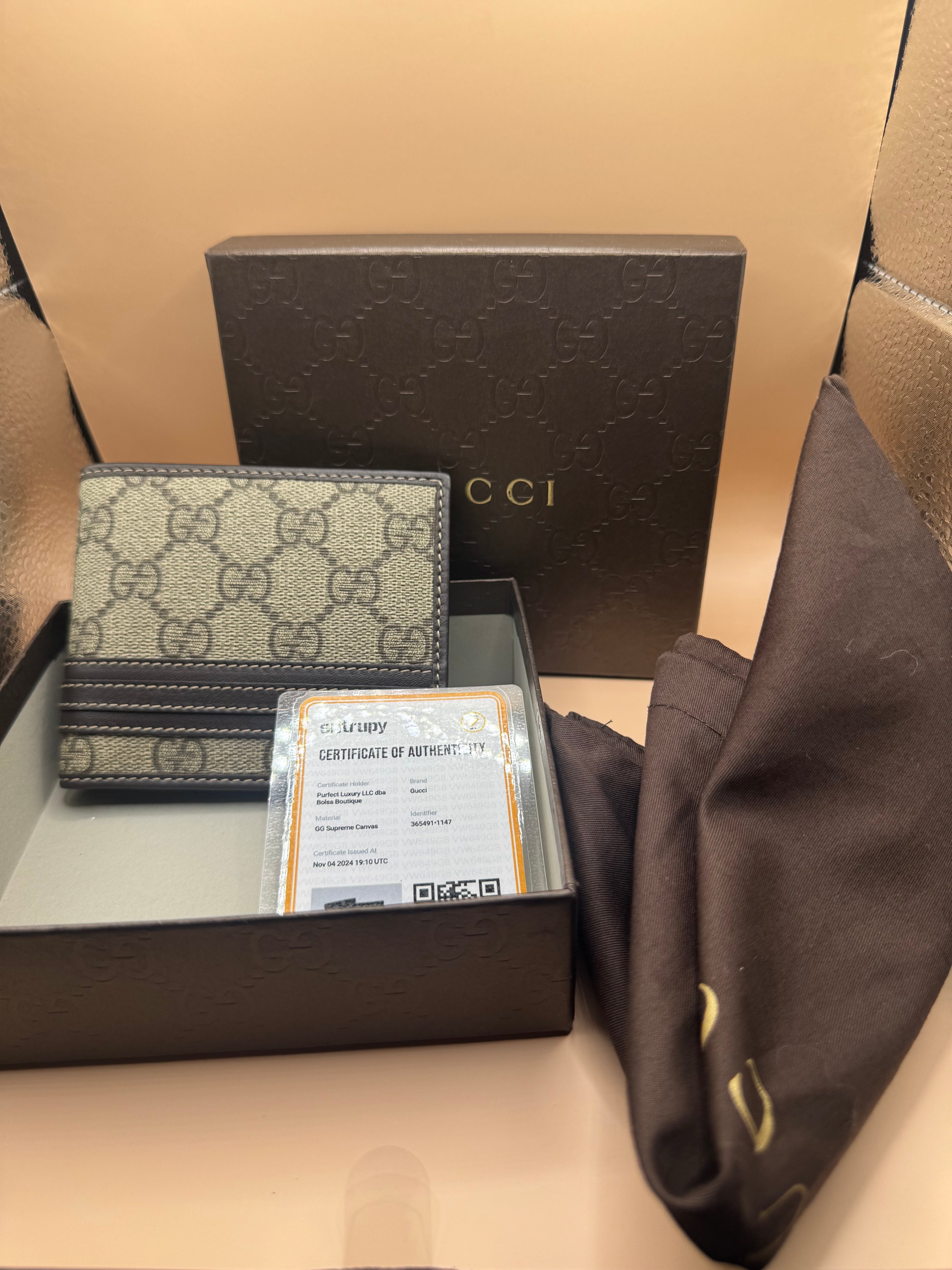 Gucci GG Supreme Canvas and Leather Mens Wallet